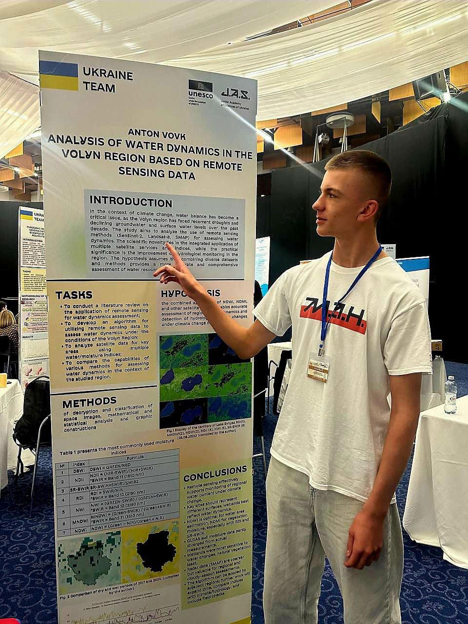 Юнак представив власний проєкт «Аналіз динаміки водності території Волинської області за дистанційними даними», над яким працював понад два роки, повідомила директорка Волинської обласної Малої академії наук Тетяна Михайлюк.