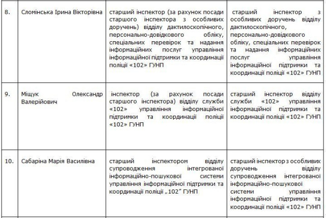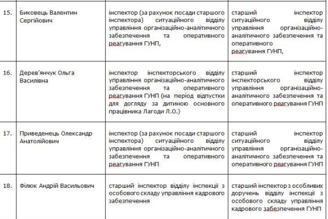 На засіданні комісії буде розглядатись питання призначення на вищу посаду (без проведення конкурсу) наступних працівників ГУНП в області:
