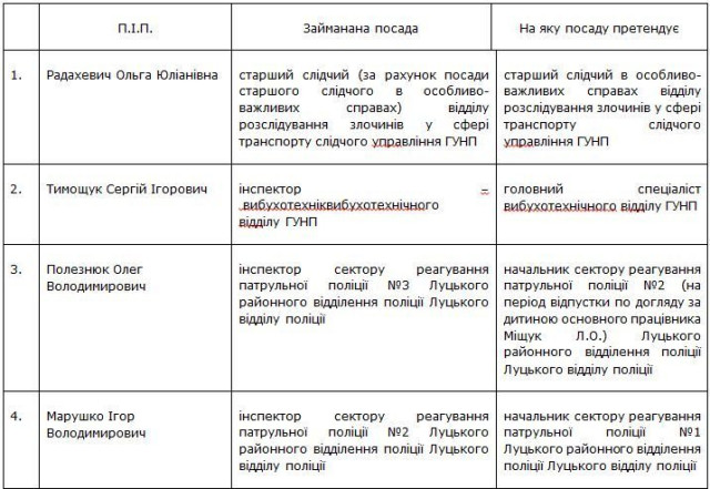 18 волинських поліцейських-претендентів на підвищення заслухають завтра. Список