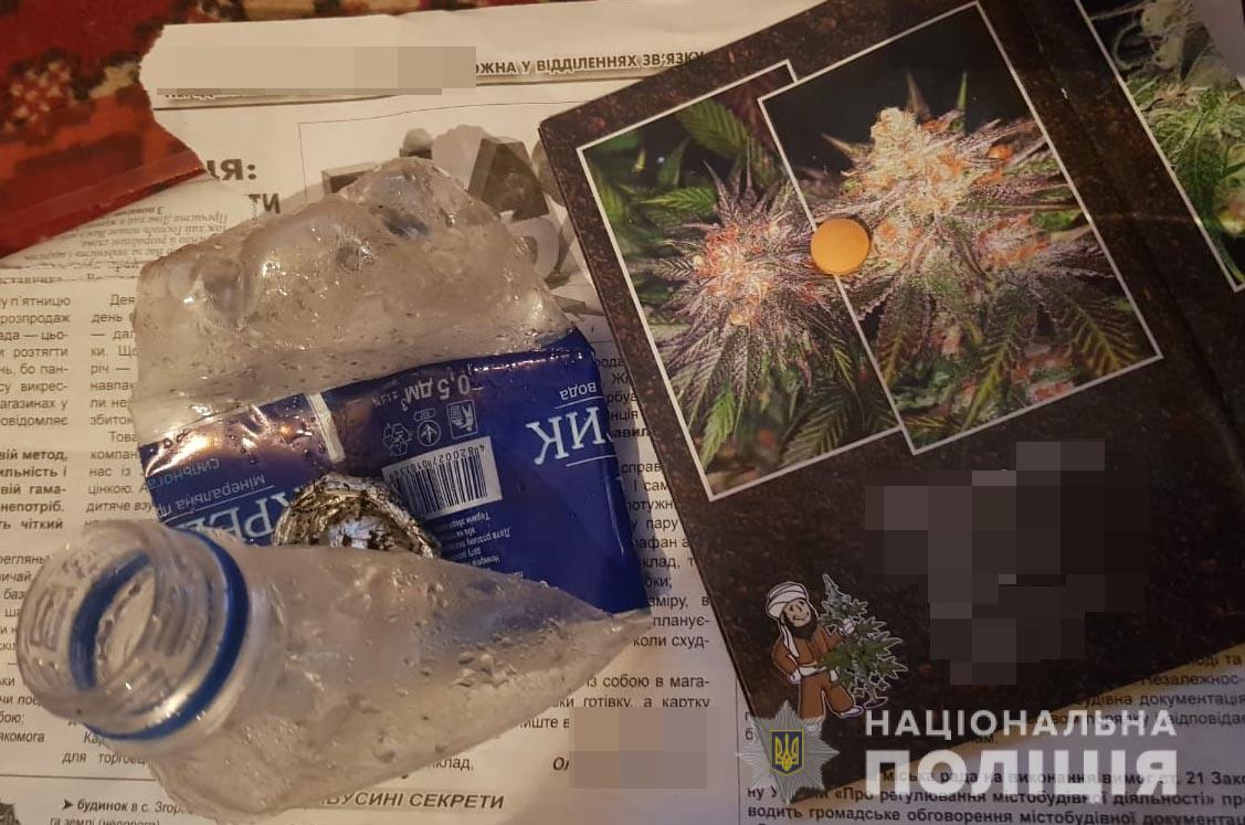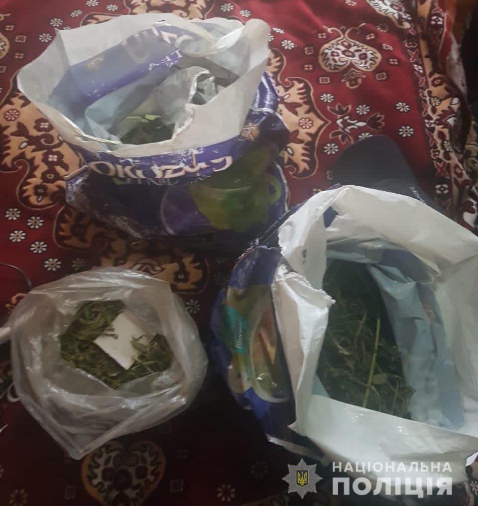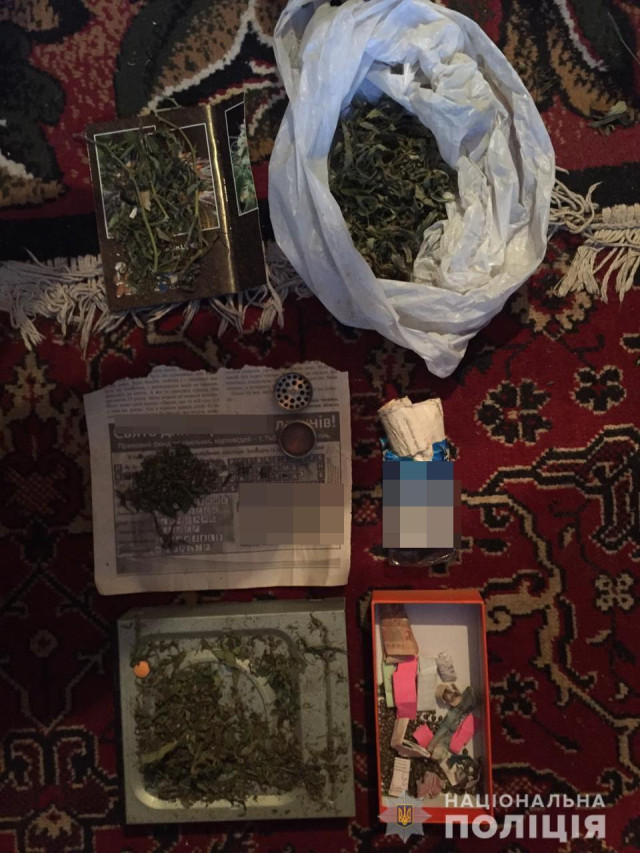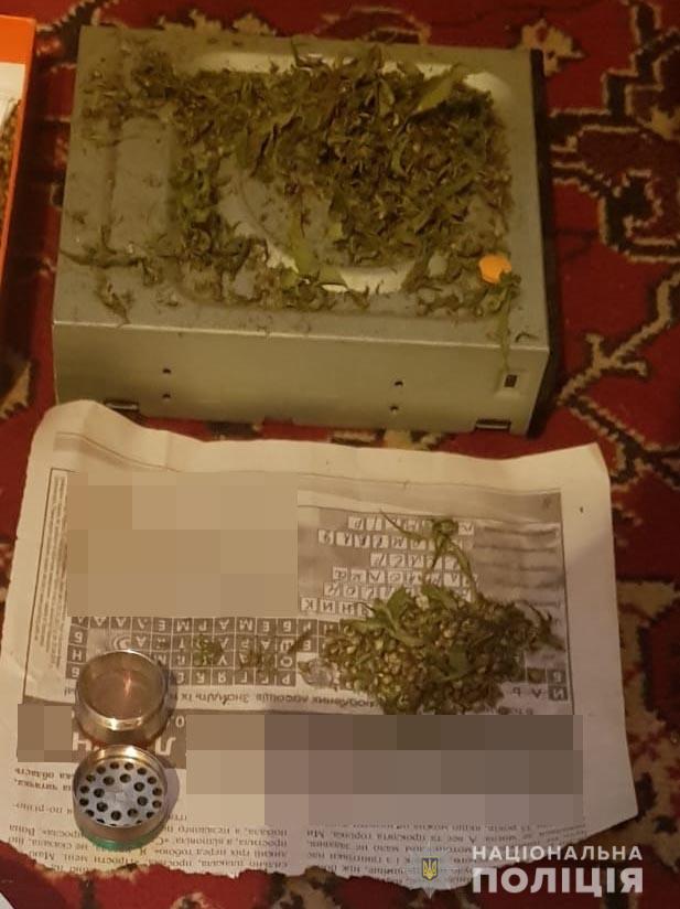 Під час розслідування кримінального провадження поліцейські провели обшуки у ще п’ятьох громадян. В одного з них, 25-річного місцевого жителя, було виявлено: 4 полімерні пакети з канабісом, зерна коноплі, таблетки рожевого кольору невідомого походження, 3 пристрої для куріння, пристрій для подрібнення наркотичних речовин та посібник з вирощування конопель.