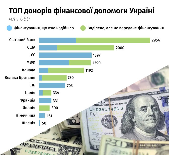 Обсяг фінансової допомоги, обіцяної найбільшими донорами України, 9 травня перевищив 11 млрд дол. Проте надійшли ще не всі кошти.