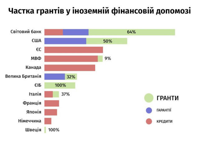 Близько 36% допомоги, виділеної партнерами Україні, є грантовою.