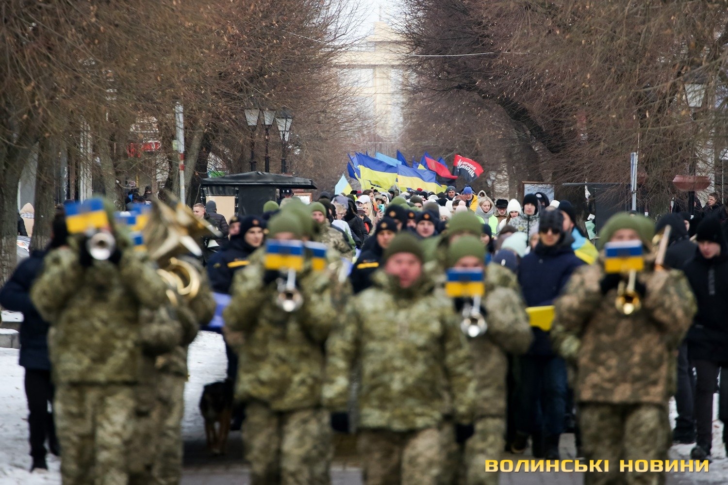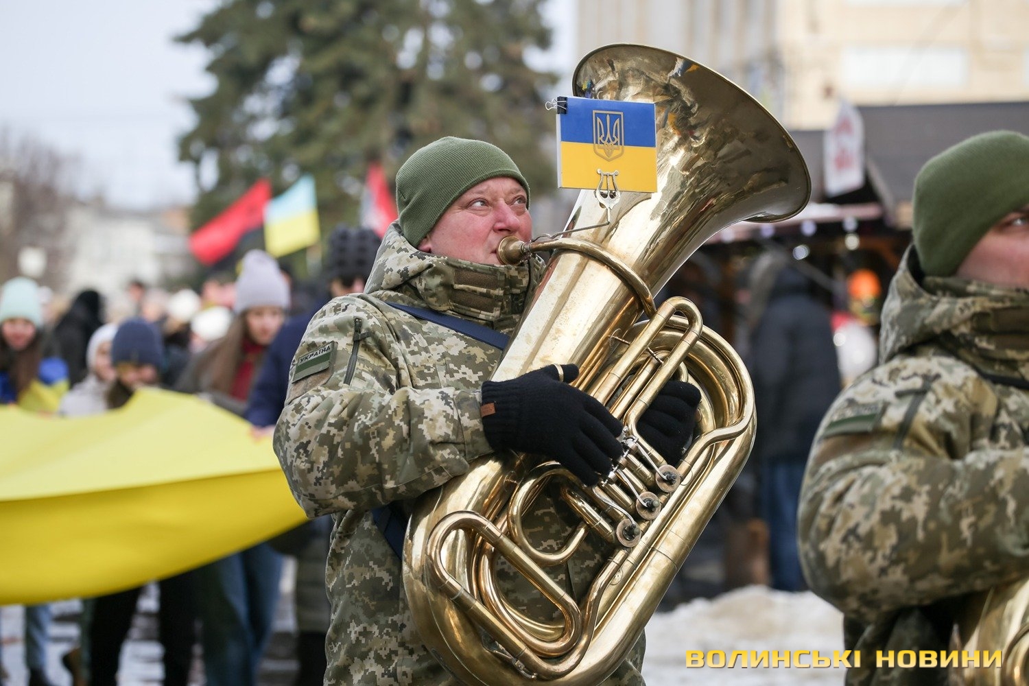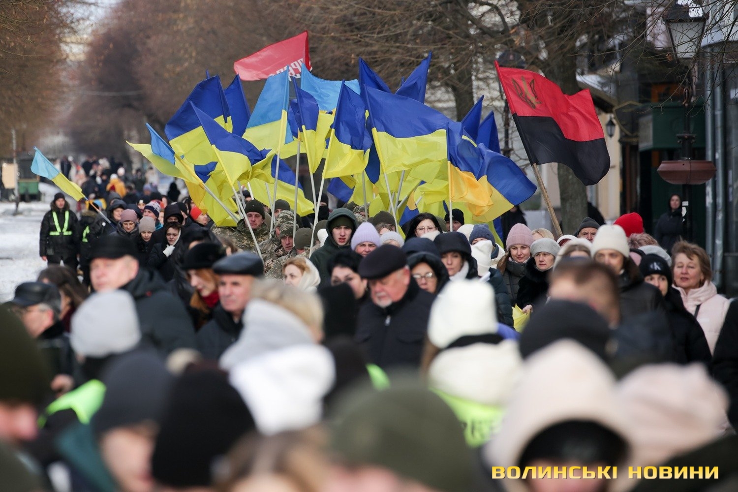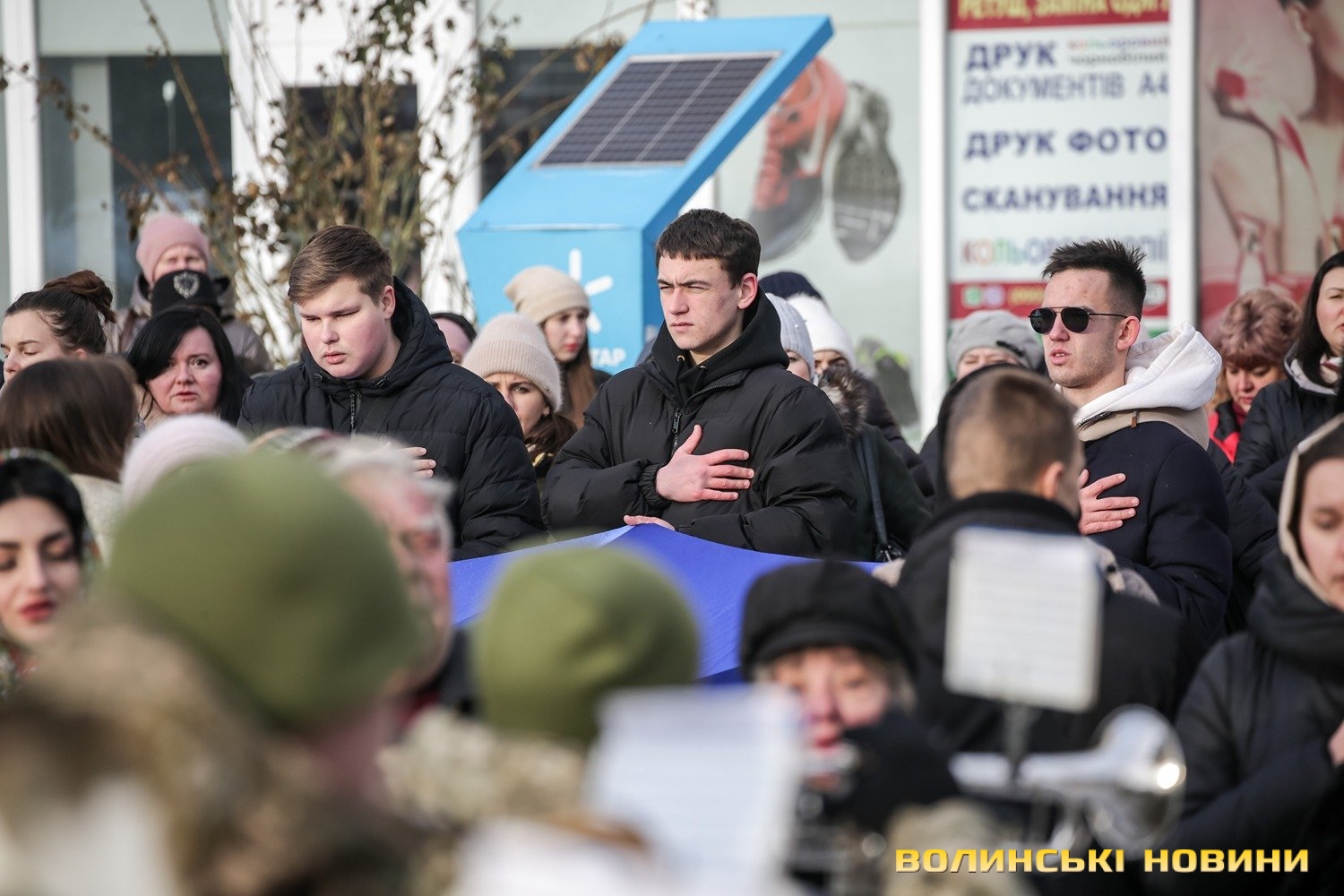 З цієї нагоди в Луцьку відбулася акція «Ланцюг єднання», під час якої учасники розгорнули двохсотметровий український прапор та пройшли патріотичною ходою від Театрального майдану до площі Злуки.