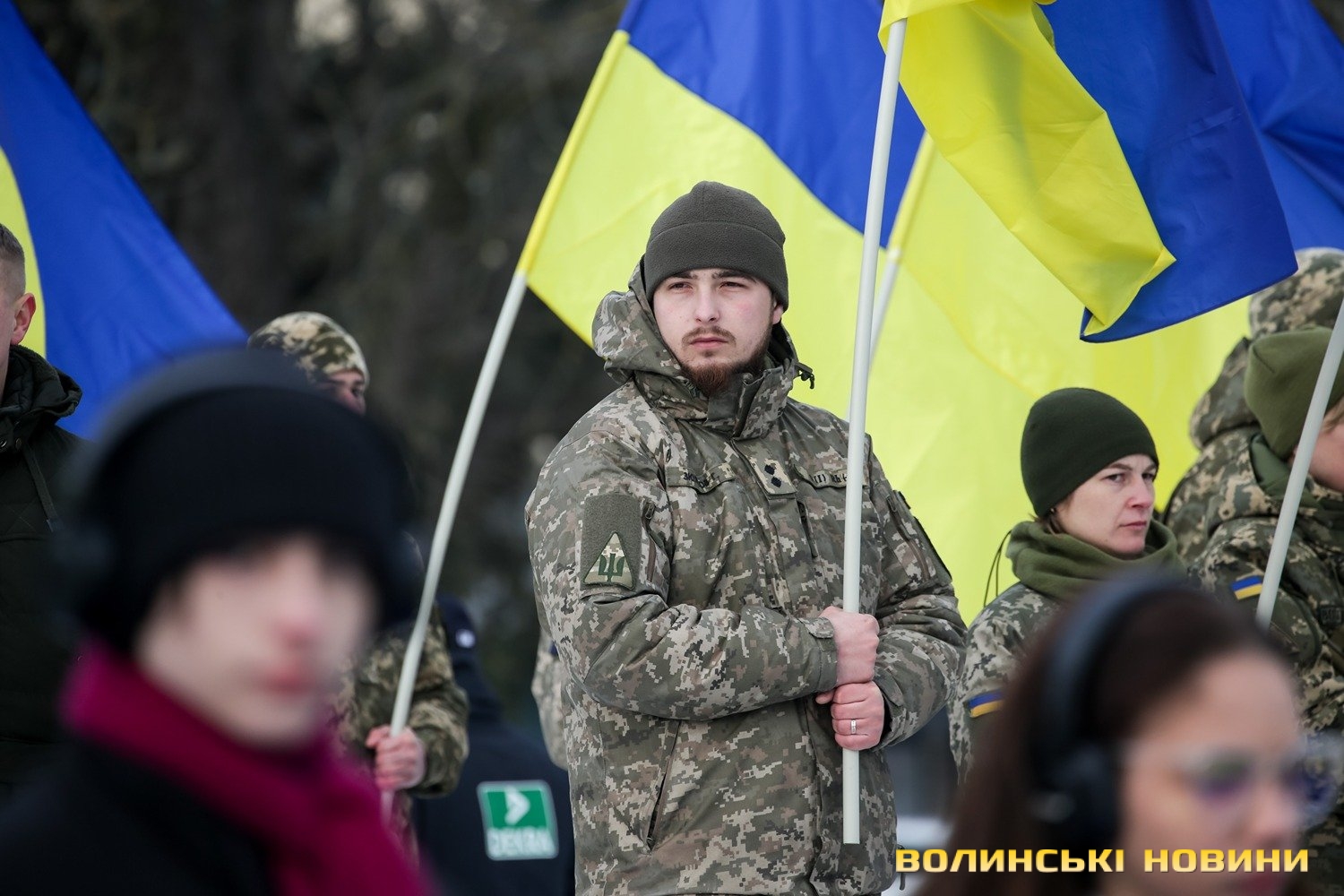 «Сьогодні ми усі покажемо свою єдність, згадаємо усіх, хто поліг за Соборну Україну, та помолимся за захисників, які захищають Україну зараз», – зазначив Юрій Семчук.Ветеран російсько-української війни, радник Луцького міського голови з питань роботи з ветеранами Тарас Сасовський пригадав, що у школі та інституті для нього сьогоднішня дата була лише сухими словами у підручнику, а зараз ми всі є учасниками історичних подій.