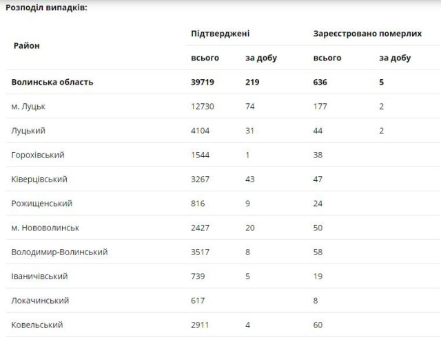 За останню добу на Волині зареєстровано 219 нових підтверджених випадків коронавірусної хвороби COVID-19 (з них дітей – 11, медпрацівників — 15).