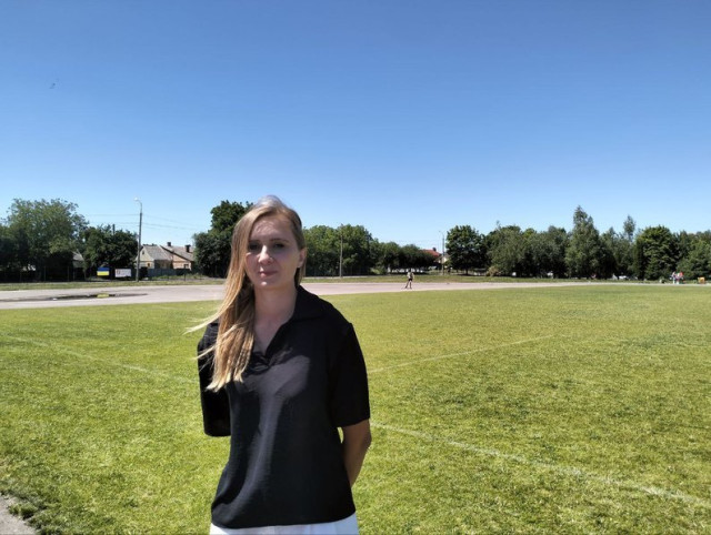 Поруч на доріжці – переселенка із Донеччини Діана Бритва. Дівчина третій рік живе у Луцьку, займається цим видом спорту. Цього разу бігла на роликових ковзанах 800-метрівку.