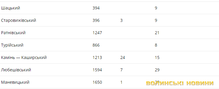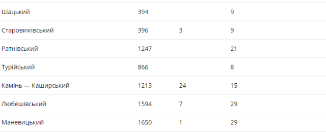 Кількість активних хворих – 6417.За останню добу випадки захворювань гострою респіраторною хворобою COVID-19 зареєстровані серед учнів та вчителів м. Луцьк, Маневицького, Ковельського, Горохівського, Ратнівського та Камінь-Каширського районів (захворіли 9 учнів та 11 педагогів). На даний час продовжують хворіти 189 учнів та 216 працівників закладів освіти.