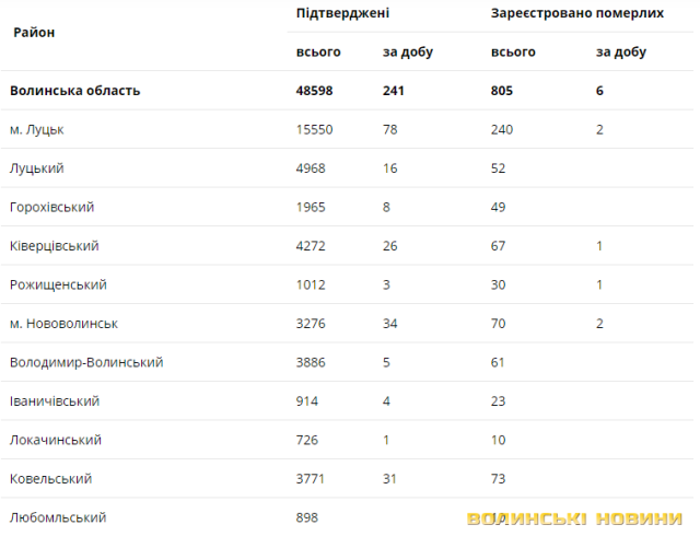 241 новий хворий та 6 смертей. Де на Волині виявили коронавірус