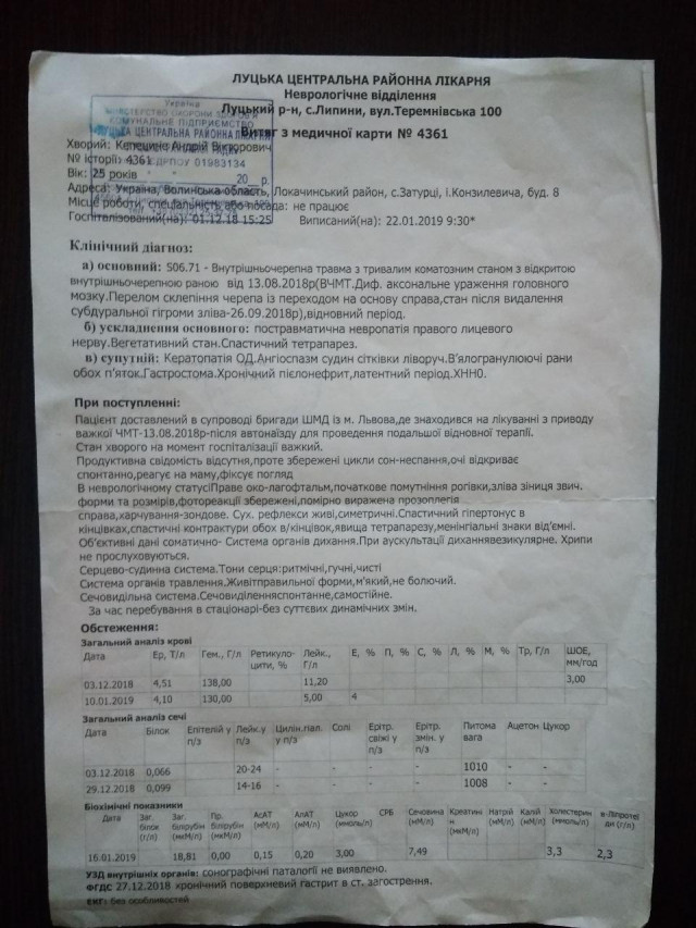 25-річний волинянин, який постраждав у ДТП, потребує допомоги