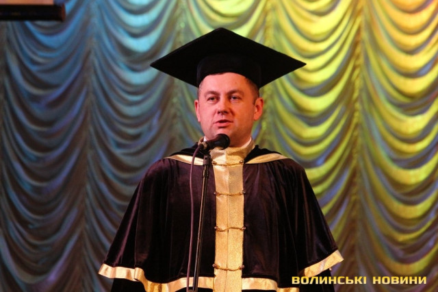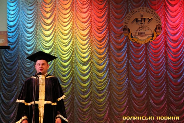 Так, дійство розпочалося з виступу академічного камерного оркестру «Кантабіле» на чолі з художнім керівником колективу Товієм Рівцем.Далі привітати випускників вийшов на сцену ректор Луцького національного технічного університету Петро Савчук, який побажав випускникам-магістрам вірити в себе.