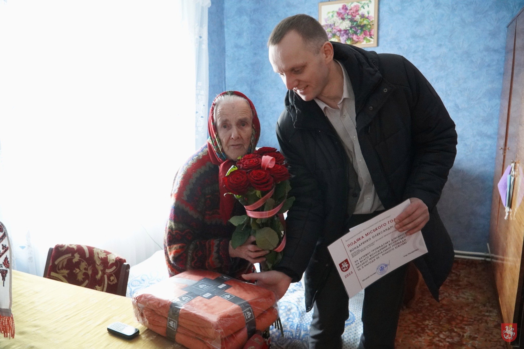 «За активну громадську діяльність на благо Володимир-Волинської міської територіальної громади, з нагоди 90-річного ювілею вітаю Вас з днем народження. Першочергово бажаю міцного здоров’я, довгих років життя, миру та родинної злагоди. Я щиро дякую Вам за кропітке виховання дітей, онуків, правнуків, за ваш трудовий вклад у життя держави», – зазначив у вітальному слові секретар міської ради.Олександра Денисівна при хорошому настрої та розумі радо вітає гостей у родинній садибі, де мешкає зі своєю внучкою Оленою. Своїм найбільшим скарбом і надбанням називає 5 онуків та 4 правнуків, які часто провідують та тішать бабусю. За великий трудовий внесок свого часу жінка отримала звання «Ветеран праці». Не оминають увагою та всіляко допомагають жінці в побуті працівники соціальної служби відділення соціальної допомоги вдома.