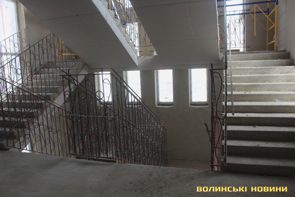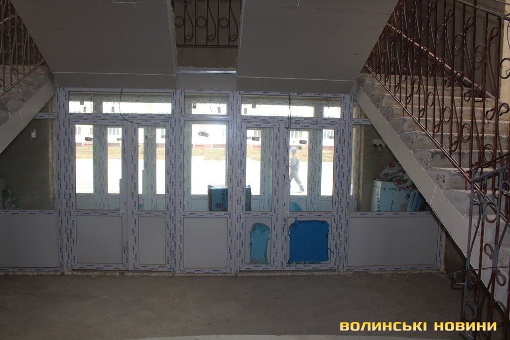 До слова, за міськими мірками, школа – не найбільша, а одна з середніх. Чи забезпечить вона всіх мешканців мікрорайону шкільного віку місцями, поки спрогнозувати важко. Нині ж батьки водять своїх дітей у найближчі ЗОШ №№ 10, 19 та 26. Причому до 26-ї школи добратися проблематичніше через те, що доводиться переходити проспект Соборності з дуже інтенсивним рухом автотранспорту. Тож лучани вже приходять в управління освіти з проханням записати їхніх дітей у нову школу. Але записувати їх нікуди. Також добудови закладу чекають і педагоги, яких можна працевлаштувати в школі.центральний вхід зсередини