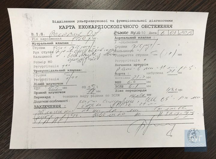 У Волинській обласній клініці поставили діагноз: Мінтральна недостатність ІІІ ступеня. Обрив хорди задньої стінки. Вторинний інфекційний ендокардит.