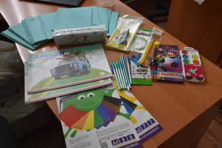 Загалом видано 350 комплектів канцелярського обладнання. До набору увійшли зошити, альбоми, кольоровий папір, ручки та олівці, ножиці, обкладинки та інше приладдя.