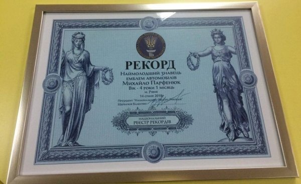 Чотирирічний Михайлик Парфенюк з Рівного може втерти носа досвідченому та бувалому автолюбителю: хлопчик знає емблеми 250 марок автомобілів. Його ім’я 14 січня внесли до Книги рекордів України. Про це пише «Рівне вечірнє».