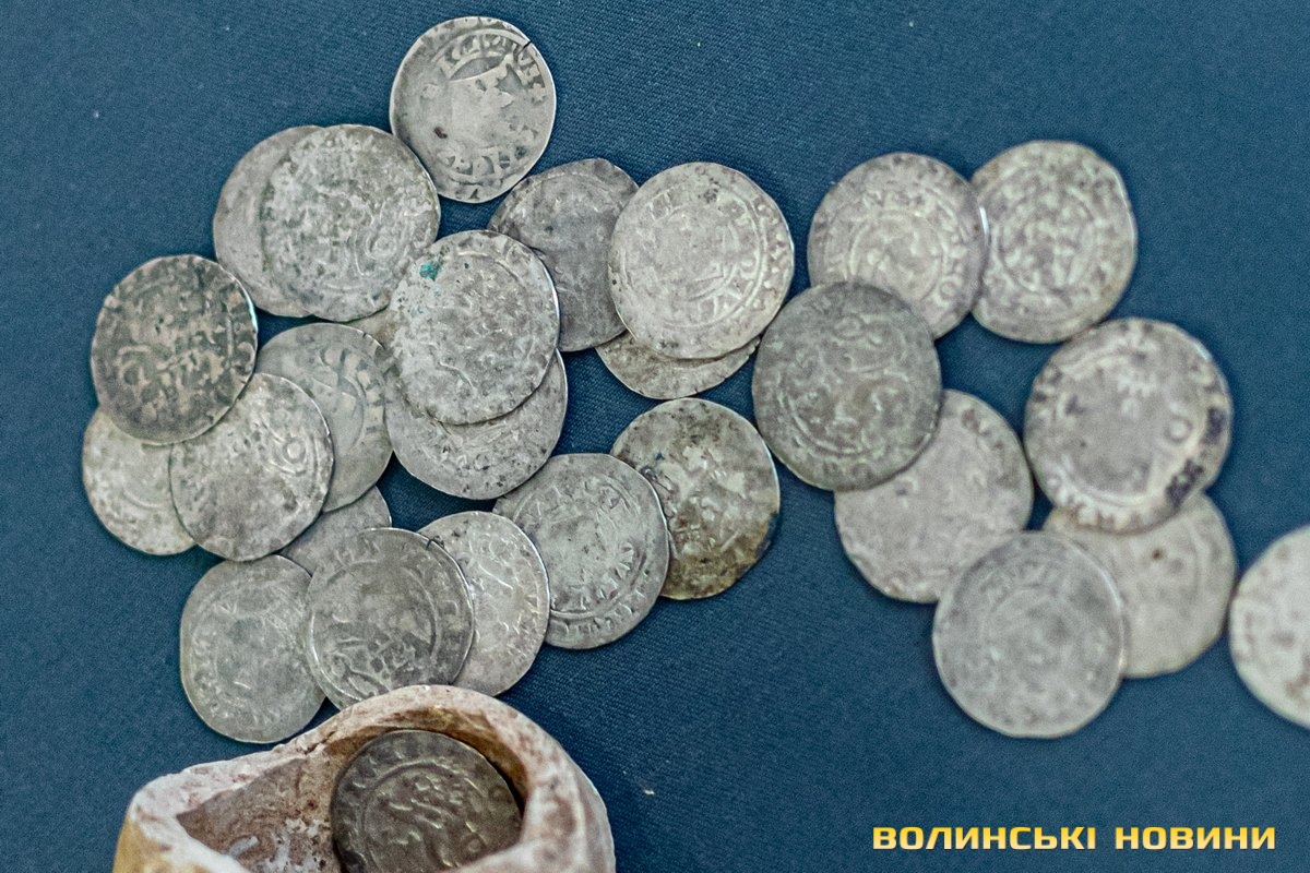 Скарб празьких грошів знайшла експедиція під керівництвом Олексія Златогорського у селі Полонка Луцького району. 29 монет XIV ст містилися між дерев’яними конструкціями житла разом з уламками горщиків. Празькі гроші не дарма вважають своєрідними доларами XIV-XV ст. У Чехії були великі поклади срібла і держава монополізувала право на будь-які вироби з цього металу, не лише монети. Срібло було якісне і тому дуже поширилося Європою.Дослідники вважають, що гроші міг хтось заховати під час так званої луцької війни 1431 року, коли війська польського короля Ягайла облягли місто, де оборонялися прихильники князя Свидригайла.5. Рованцівський скарб