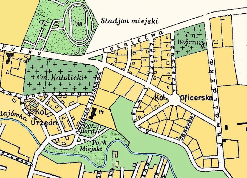 У 1928 році Адам Кунцевич склав проєкт офіцерської колонії в Луцьку. Обшир території між цвинтарем, де зараз Меморіал, і австрійським меморіалом ProPatria, де зараз школа №5, він розділив так. Із усієї ділянки площею біля 44 га частина призначалася на житлову забудову для чинних військовиків, це 12,5 га. Ще 6,4 га – для ветеранів. Для шкільного кураторіуму – 5 га. На парк понад річкою – 4,6 га. Приблизно 4,6 га відводили під площу вулиць. Решта території – це австрійський та протестантський цвинтарі, що були на місці території теперішньої школи №5.