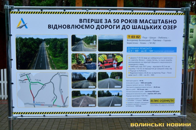 «Пандемія коронавірусу продовжується, але від цього є й плюси – внутрішній туризм почав розвиватися. Українці стали більше подорожувати своєю країною. Один із туристичних магнітів Волині – Шацькі озера. Тому навколо них і відбувається відновлення доріг, яке почали торік та продовжили у 2021-му», – наголосив заступник голови Укравтодору та додав, що цього року на Волині планують відновити 195 кілометрів доріг.Заступник голови Волинської ОДА Ігор Чуліпа, своєю чергою, відзначив, що ще минулого року президент Володимир Зеленський під час презентації туристичних маршрутів Волині поставив завдання у 2021 році повністю відремонтувати дорогу від Любомля до Шацька. Цього року це станеться. Також Ігор Чуліпа повідомив, що, крім 195 кілометрів державних доріг, планують відновити 87,5 кілометра місцевих та 22,8 кілометра комунальних доріг.Ділянка дороги Піща–Положеве