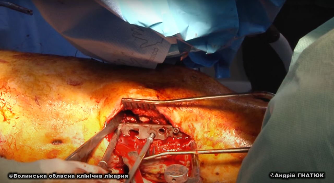 Для цього пацієнта ми використали такі інструменти, які дозволяють через малий розріз встановити під м’якими тканинами над кісткою цю пластину і стабілізувати її через кілька отворів. Ми не розрізали тканини повністю. Це сприятиме кращій фіксації», – розказав професор Юліан Дутка.Прооперований Сергій поділився: дуже переживав, однак завдяки анестезії нічого не відчув.«Замість зовнішньої фіксації ми застосували нову малоінвазивну методику з усунення перелому стегнової кістки. Ми задоволені. Перебіг передбачуваний. Пацієнт почувається добре, однак потребує подальшого лікування. Також потребує профілактики пролежнів, а насамперед руху в зоні коліна», – зауважив професор Юліан Дутка.