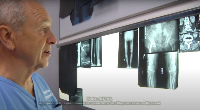 «Я впала. Став перелом шийки стегна. І весь час болить і болить», – скаржиться бабуся.Професор Юліан Дутка зі спеціалізованого шпиталю імені Жеромського в Кракові зауважив: пацієнтці потрібно поставити стегновий ендопротез, щоби позбавити її болю під час ходьби.Переселенець Віталій Хорошев із Чернігівщини впав із велосипеда і травмував кульшовий суглоб. Нині ходить із милицями.«Їхав із внучкою на велосипеді. Вона сиділа на рамі. Її нога втрапила в колесо. Я вилетів через кермо. Вдарився. Упав на асфальт. Лікарі відразу сказали, що потрібно міняти суглоб. Хоча потім інший лікар із реабілітації сказав, що можна було три шурупи вкрутити і я бігав би давно. Зараз уже час втрачено», – розповів чоловік.