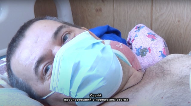 В операційній пацієнту Сергію з численними ураженнями правої ноги, з переломом стегна знеболили лише нижню частину тіла. Він був при тямі і спостерігав за тим, що відбувалося в операційній. Кожен крок хірурги контролювали рентгенівськими знімками.