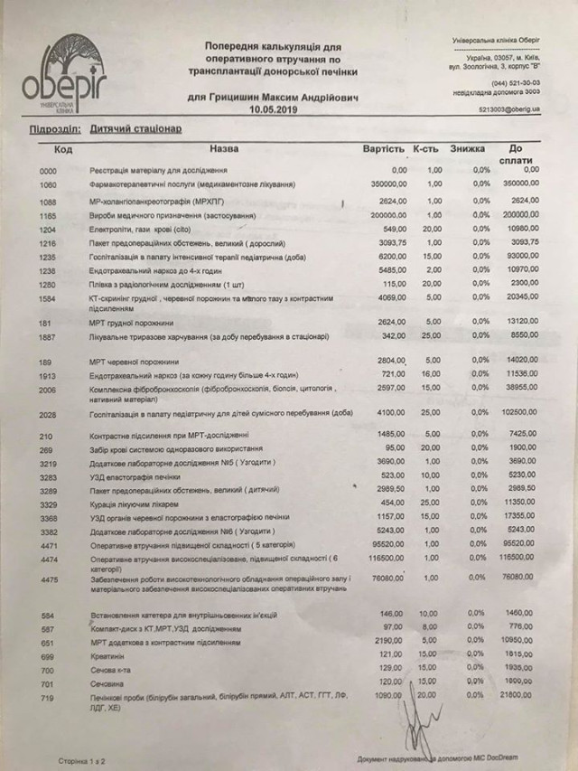 Так, операція вартує 1 281 012 гривень. Звісно, додатково потрібні будуть кошти й на реабілітацію. Проте зараз Максим має шанс на життя, якщо знайдуться люди, готові допомогти», – йдеться на сторінці.