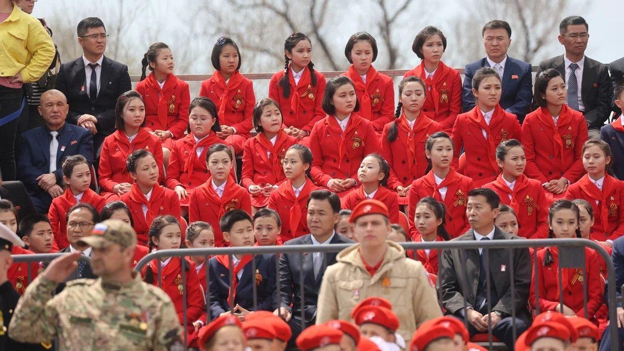 Повідомляється, що командували парадом військовослужбовці та колишні учасники бойових дій, а глядачами були діти з КНДР.Губернатор заявив, що «вийшло грандіозно», що він «пишається» цими дітьми і що вдячний їхнім батькам і вчителям.