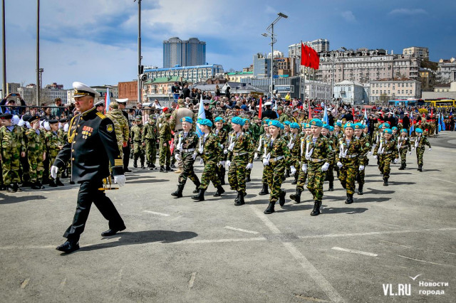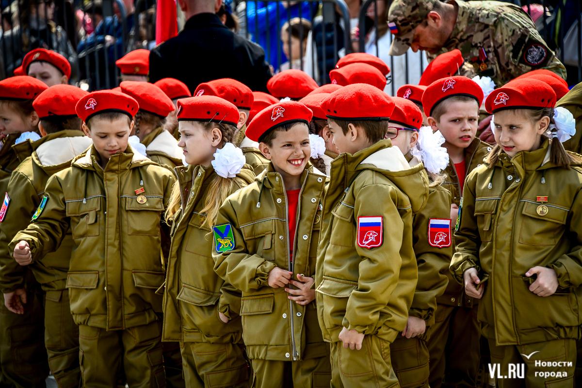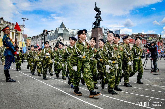 «У столиці Далекого Сходу відбувся перший в історії дитячий парад. Понад півтори тисячі учнів початкових класів з усіх районів Примор’я пройшли парадними колонами, що символізували різні роди військ і добровольчі загони», – сказав Кожемяко.