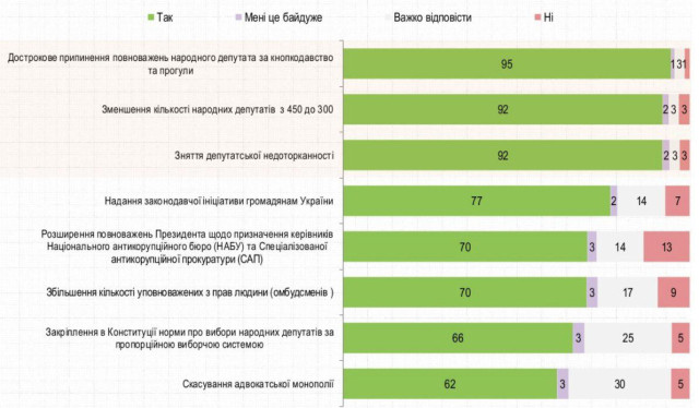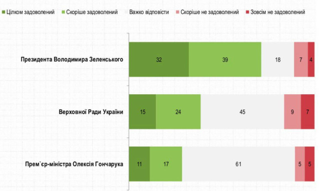 «71% опитаних задоволені діяльністю президента України Зеленського, 11% – протилежної думки, 18% – не змогли сформувати своє ставлення до нього», – наголошується у прес-релізі за результатами опитування.