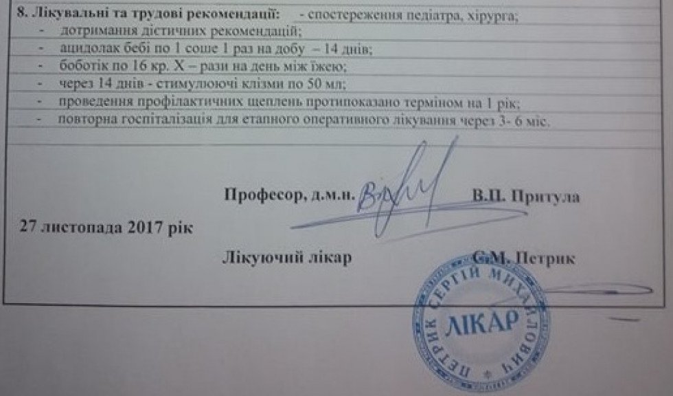 Нагадаємо, біда спіткала малюка від самого народження. Лікарі поставили невтішний діагноз: вроджена вада розвитку. Аноректальна атрезія з ректопромежинною норицею. Хронічний неспецифічний коліт.