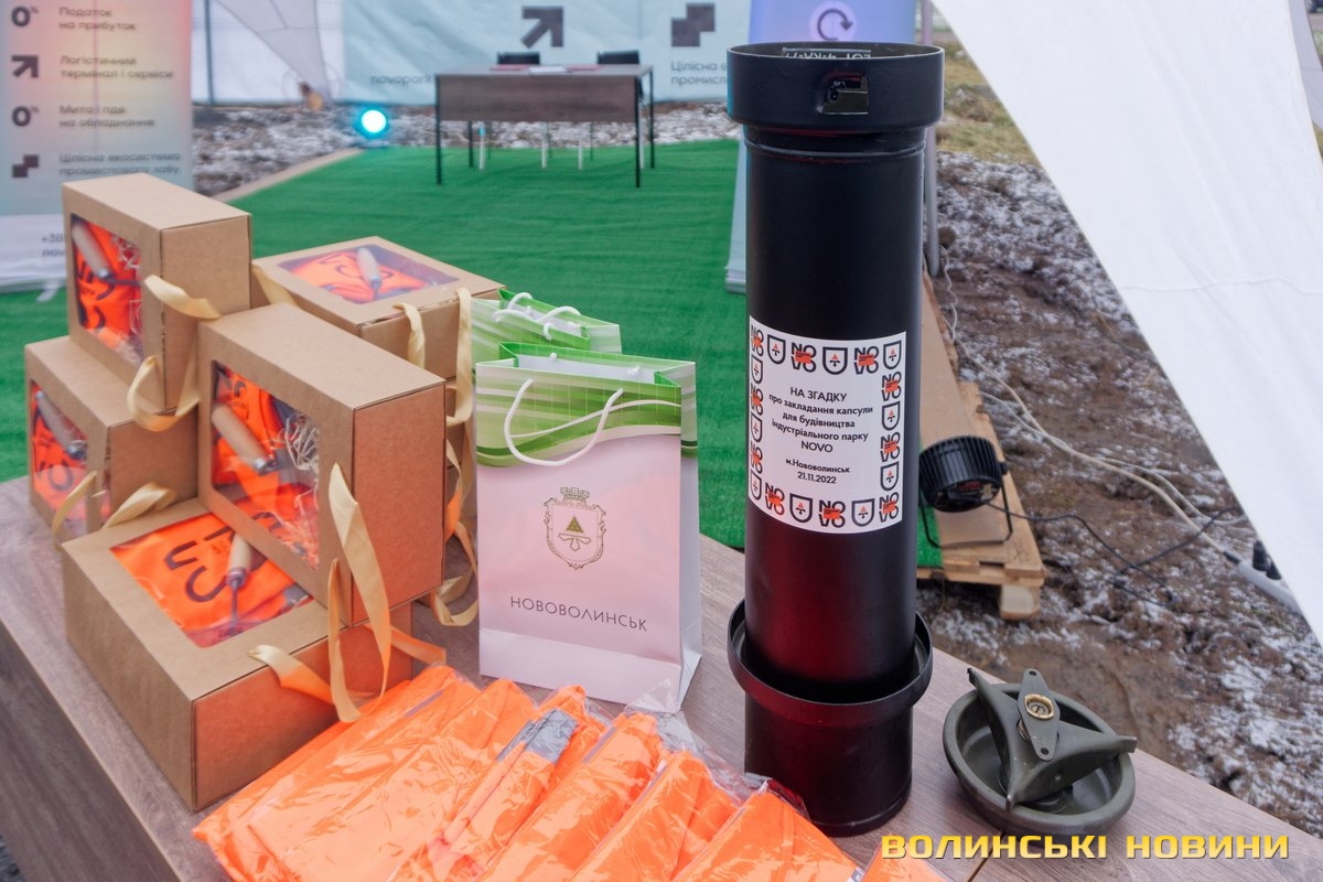 Водночас на території майбутнього food-кластеру заклали капсулу часу з посланням до нащадків на 25 років, а Нововолинський міський голова Борис Карпус і голова керівної компанії індустріального парку «Бюро інвестиційних програм» Олександр Бондаренко підписали угоду про співпрацю.Площа індустріального парку в Нововолинську – 20 гектарів. Там можуть розміститися близько 10 підприємств харчової промисловості. Вже є попередні домовленості з підприємствами зі сфери переробки риби, виробництва харчової продукції та логістики про зобов’язання увійти в парк.