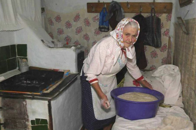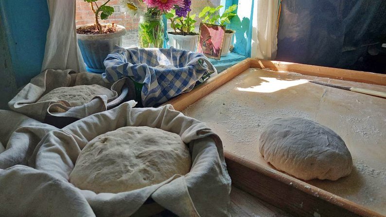 Спершу замішує тісто для хліба – цей процес триває півтори години. Зі слів пенсіонерки, на 12 буханців використовує орієнтовно відро борошна.«У хатах не люблю прибирати, а хліб люблю пекти і в городі цюкати. Ото моє хобі», – усміхається.
