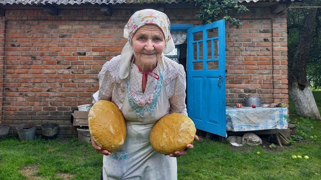 Нині у господарстві Ольги Подвернюк більш як 20 курей та пес. Поки тісто росте, бабуся показує город.«Хай молотять, хай буде нам хлібчик, всім. Гляньте, яка пшеничка файна. То моє все, то моє життя. Отакі маю помідорчики, отака господиня», – каже волинянка.У старенькій хатині, ділиться спогадами Ольга Феодосіївна, спекла свій перший хліб. Сюди, каже, прийшла у невістки, коли їй було 17 років. Відтоді й пече хліб. Ще досі випікає короваї на весілля, майже 20 років щотижня пече по 30 проскурок у церкву.