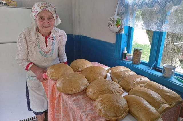 Господиня Ольга Подвернюк із села Веселе Луцького району від початку повномасштабної війни спекла понад 90 буханців хліба для захисників. Волинянці – 82 роки.