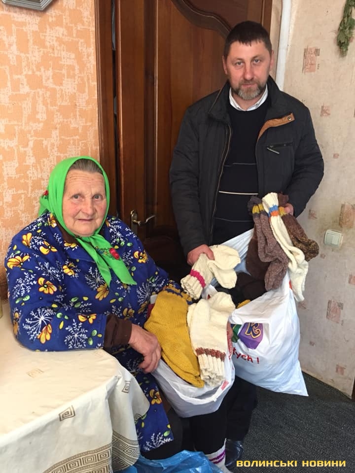 Нитки для шкарпеток бабусі Соні передають небайдужі українці. І не лише з Луцька чи Забороля, а й з Лос-Анджелеса та Італії. Як гарна сонячна днина, Софія Федорівна може сплести пару шкарпеток, як день похмурий ‒ одну шкарпетку. Щоб хлопці їх не плутали, бабуся робить різні кольорові смужки.