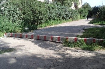 На в’їзді у двір будинку, що на вулиці 8 березня, 17, у Луцьку, лежить посмугований стовп, що перекриває водіям дорогу до будинку