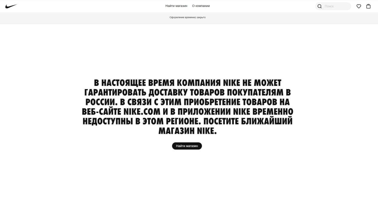 Після вибору товару неможливо замовити доставку.Така сама ситуація з офіційним сайтом Nike – зробити замовлення у Росії не можна.
