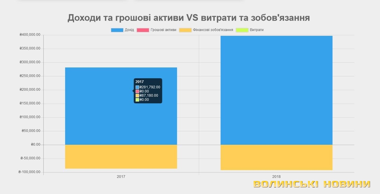 Порівняно з 2017 роком дохід подружжя зріс на 114 948 гривні.Водночас прокурор вказав відомості про те, що разом із дружиною минулого року сплатив 92 180 гривень кредитів.