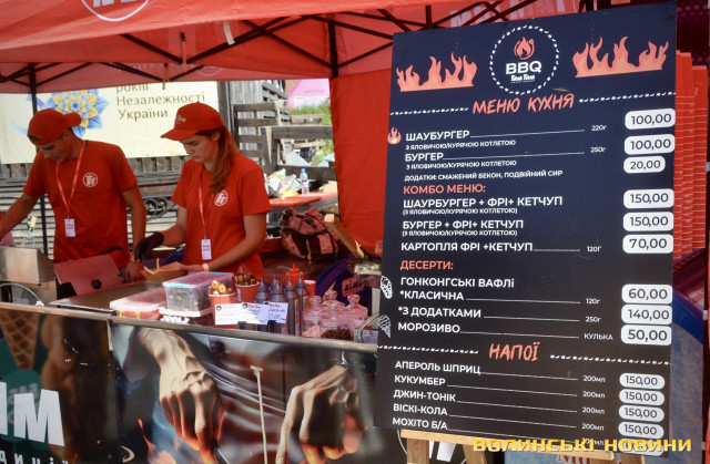 Для відвідувачів готують реберця, стейки, шашлики, бургери, кебаби, овочі-гриль, морепродукти, плов, закуски, бограч, піцу, салати, фіш-енд-чипс, солодощі та ще багато-багато смачних наїдків. І до них подають лимонади, соки, квас, пиво, вина, наливки і коктейлі.Окрім різноманіття оригінальних страв і напоїв, організатори заходу підготували насичену шоу-програму.