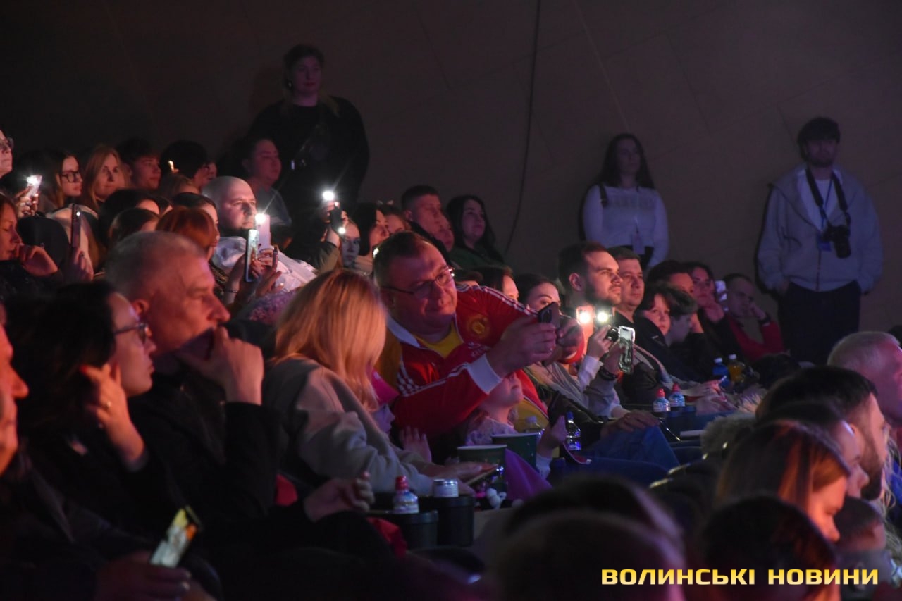 Серед учасників оновленого шоу двоє волинян – Віталій Дужик, який вправно поєднує гру на сопілці і бітбокс та мультиінструменталіст Тимофій Музичук. До слова, успіх на Євробаченні-2022 допоміг здобути ще один волинянин – Ігор Діденчук, який на той час був у складі Kalush Orchestra, чоловік також брав участь в пісенному конкурсі у 2021 році як учасник гурту Go A.Перед виходом винуватців дійства виступили артисти-початківці зі Львова, які представили дві свої пісні. Одразу за ними на сцені з'явилася Євгенія Мазуренко – солістка гурту EtnoGen, який заснували разом з чоловіком Віталієм Дужиком. Вона також представила три пісні свого гурту. Лучани та гості міста підхопили атмосферу і ввімкнули ліхтарики.Читати ще: Степан Гіга з родиною і «Друзями» подарували лучанам вечір драйву. Фоторепортаж