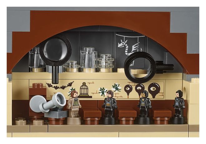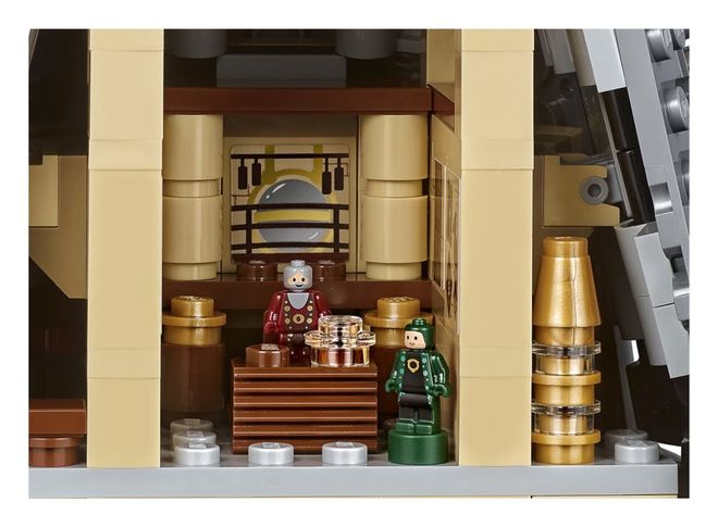 Замок має кабінет професора Дамблдора, вітальню Грифіндора, виручай-кімнати та інші приміщення. Поруч із замком можна розташувати будиночок Хагріда, таємну кімнату і вербу. У конструктор входять 27 фігурок персонажів, серед яких: Гаррі Поттер, Драко Мелфоя, Рон Візлі, Белатриса Лестранж і інші.