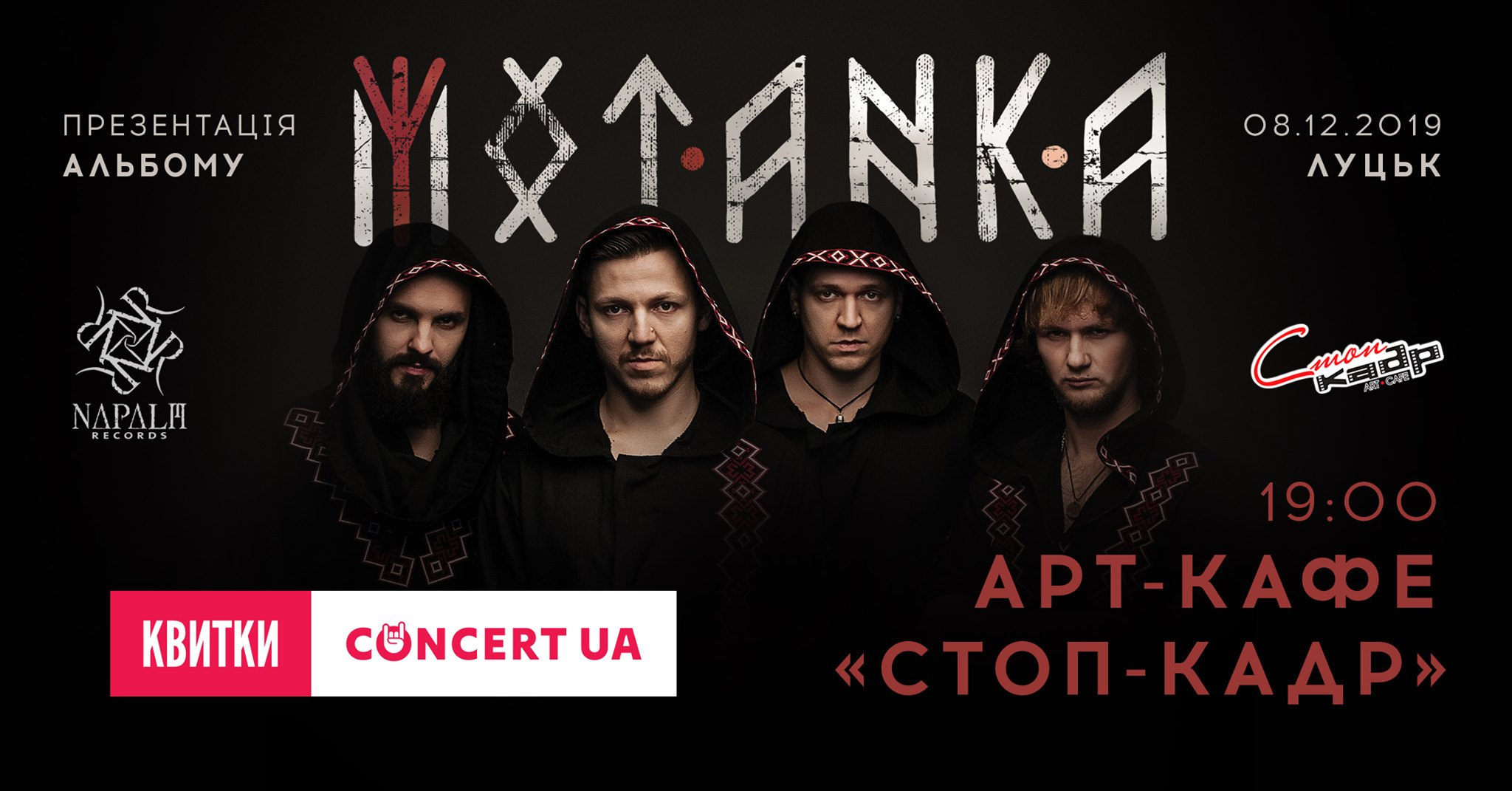 Музиканти лейблу Napalm Records та переможці фестивалю WACKEN Open Air – гурт MOTANKA презентують дебютний альбом у Луцьку. Концерт відбудеться 8 грудня у арт-кафе «Стоп-Кадр».