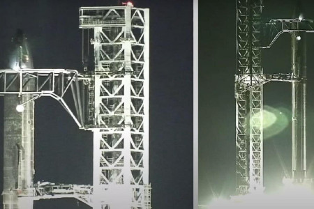 Компанія SpaceX завершила будівництво прототипу найбільшої ракети в світі Starship. Засновник компанії Ілон Маск показав, як гігантська вежа «Мехазілла» встановлює ракету на новітній прискорювач Super Heavy Booster 4.