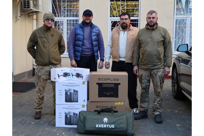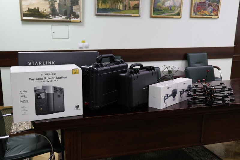 112-ій окремій бригаді територіальної оборони – два квадрокоптери DJI Mavic 3 Pro (RC), дві зарядні станції ECOFLOW DELTA 2, дві зарядні станції ECOFLOW DELTA 2 Max та портативний радіоелектронний засіб протидії безпілотним літальним апаратам КВЕРТУС AD G-6+.