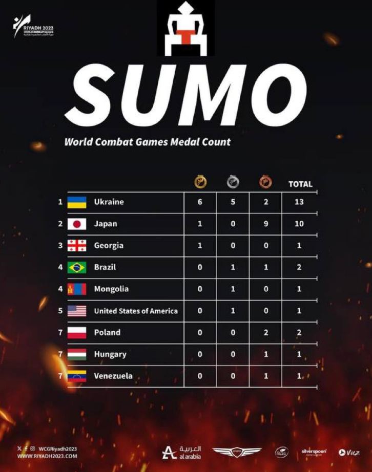 Сумоїсти із Військово-патріотичного спортивного клубу з видів боротьби «Борець», заслужені майстри спорту України з сумо Святослав Семикрас та Іванна Березовська вибороли золото на Всесвітніх іграх єдиноборств World Combat Games 2023.