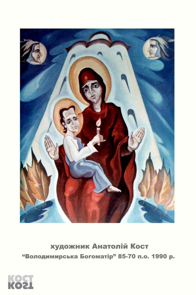 У церкві я працював десь три роки, і в моїй свідомості залишилася частина духовних образів, про які іноді згадую і починаю щось творити. У 1992 році написав «Володимир-Волинську Богоматір». Вийшла, швидше за все, картина, адже цей образ ламає певні канони.