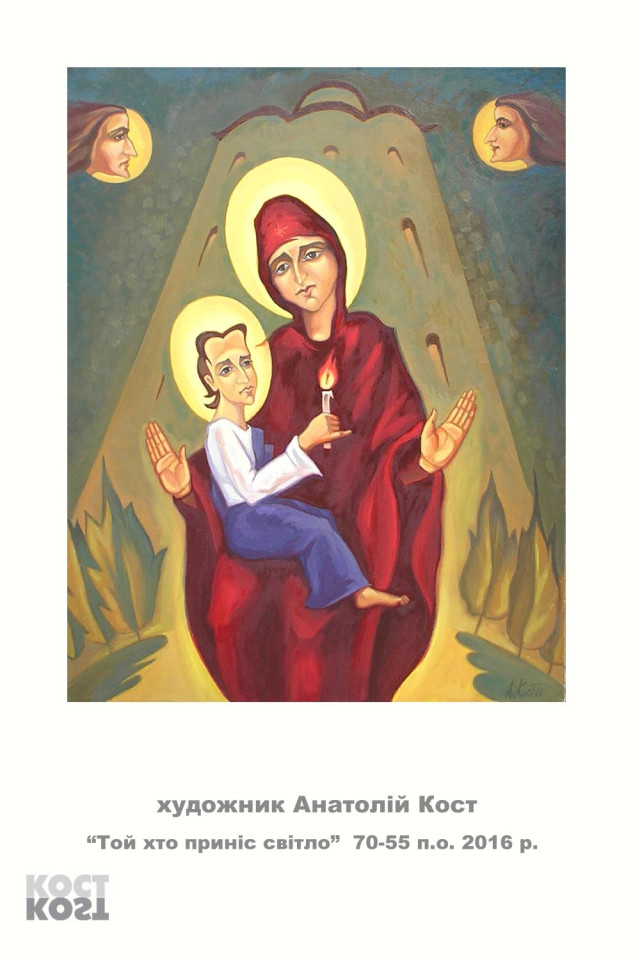 Досить цікава робота, і доля в неї також цікава. У 1993 році їздив у Львів і отримав аудієнцію у Любомира Гузара (тоді ще кардинала). У нашій розмові йшлося про долю саме цієї картини. Зараз «Володимир-Волинська Богоматір» – у Канаді.У 2016 році я створив новий варіант цієї картини – «Той, хто приніс світло», частково змінив колористику твору. Його доля – також цікава. Нині він у Туреччині. Якщо з часом у когось виникне запитання, а чому саме там, не на Батьківщині, то відповідь – на поверхні...Ще одна робота – «Христос». Вона не вписується у звичні канони і «мешкає» в Канаді. Лише підготовчий рисунок до неї зберігається в приватній колекції в Україні.
