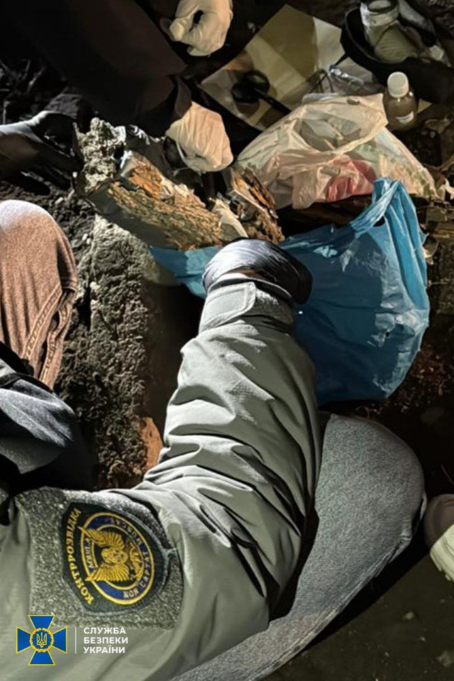 Йдеться про ще один СВП, який агентка замаскувала на дереві за кілька метрів від замінованого авто й додатково спорядила металевими гайками для підсилення дії ураження.Використовуючи вибухову пастку, ворог сподівався вбити і важко поранити максимальну кількість людей і тим самим спровокувати панічні настрої в місті.