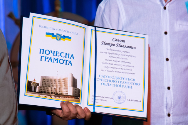 За багаторічну працю, високу професійну майстерність, відданість справі, значні творчі здобутки, особистий внесок у виховання підростаючого покоління, Григорій Пустовіт також нагородив ювіляра Почесною грамотою обласної ради.