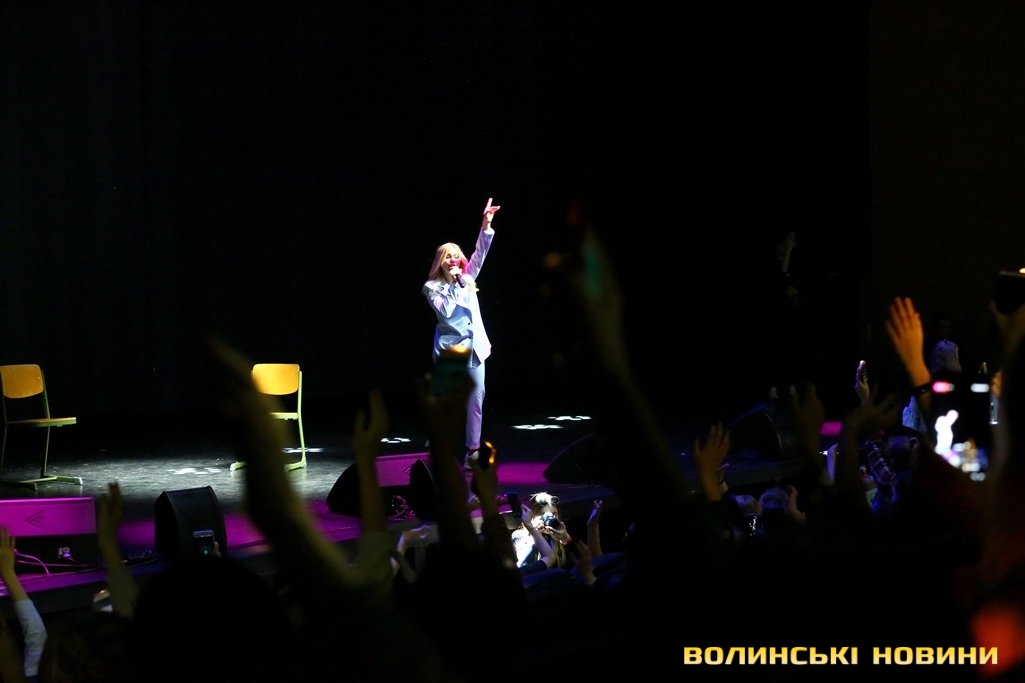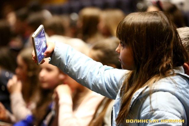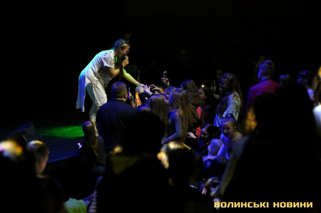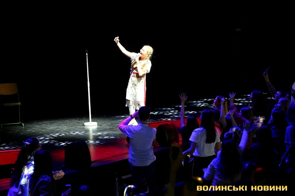 Так, ще задовго до 18.00, перед початком заходу, простір перед входом до залу, та й сам зал заполонили радісні школярі, які принесли з собою квіти, роздруковані постери, іграшки, сувеніри та власноруч підготовлені плакати.Більшість не могла повірити своєму щастю – тому, що їхні кумири і справді приїхали до Луцька. «Я не вірю, що вони вже тут», «Я так довго чекала цього», «Нарешті дочекалися, я в передчутті» та інші подібні вислови, переповнені найкращими сподіваннями, лунали звідусіль.Спочатку на сцену вийшла півфіналістка проекту «Голос. Діти» Вероніка Коваленко. Усі присутні відразу ж не змогли втриматися від радісних вигуків, криків, овацій і тупотінь у такт виконаних нею пісень. Окрім того, діти охоче підспівували.«Я дуже рада, що потрапила у ваше місто. Я в Луцьку вперше. І ви дуже атмосферні. Думаю, сьогодні буде чудовий вечір і між нами розтане лід», – звернулася до публіки Вероніки і попрохала всіх разом зробити селфі.